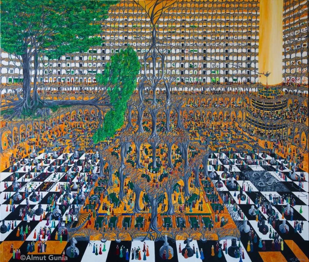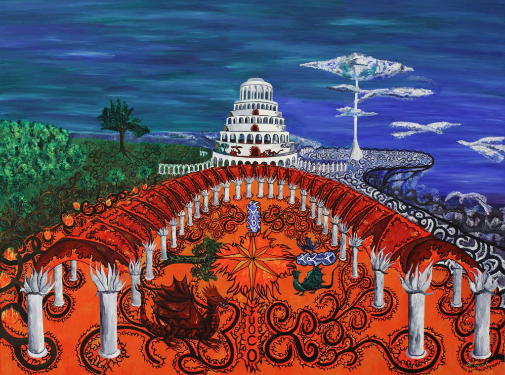 Meine Bilder entstehen aus Emotionen, sie führen in eine Welt voller Hintergründe, Symbolik, und Metamorphose. Sie spielen mit dem Spiel und mit Gegensätzen oder führen uns entlang eines Labyrinths. Sie spiegeln meine Liebe zur Natur und hinterfragen unseren Umgang mit ihr. Sie sind farbenprächtig abstrakt oder naturalistisch symbolisch. Sie sind ein Spiegel meiner Gedanken und eine surreale Welt für sich.
